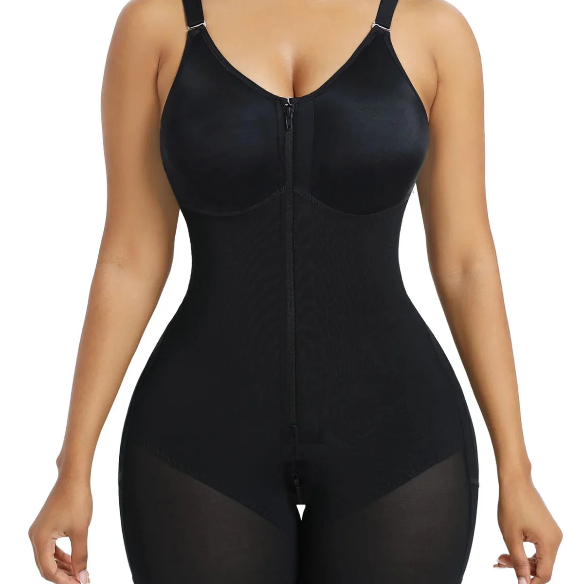 All-Day Comfort. Seamless full-body shaping with breathable stretch fabric, built-in bra support, and an easy bathroom zip — designed for real life, not just photos.
